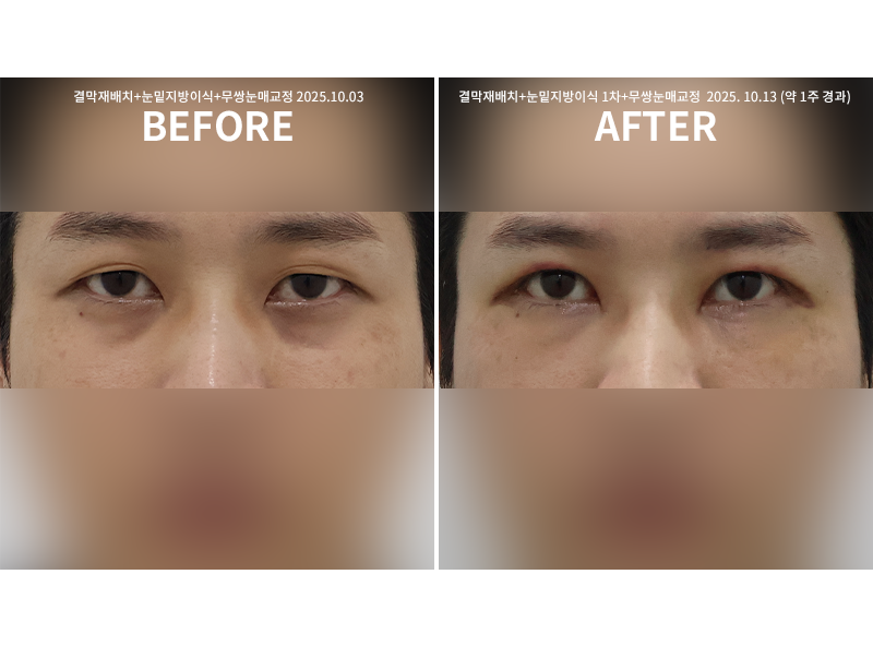 눈 밑 지방재배치(결막안)+눈밑지방이식+무쌍눈매교정 1주 경과
