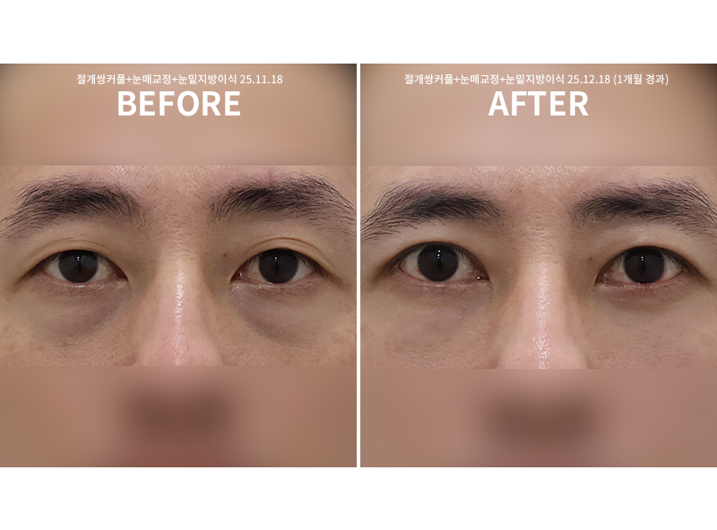 절개쌍커풀+눈매교정+눈밑지방이식 1개월 경과