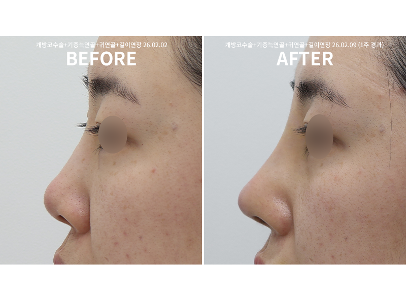 개방 코재수술+귀연골+화살코 교정 약 1개월 경과